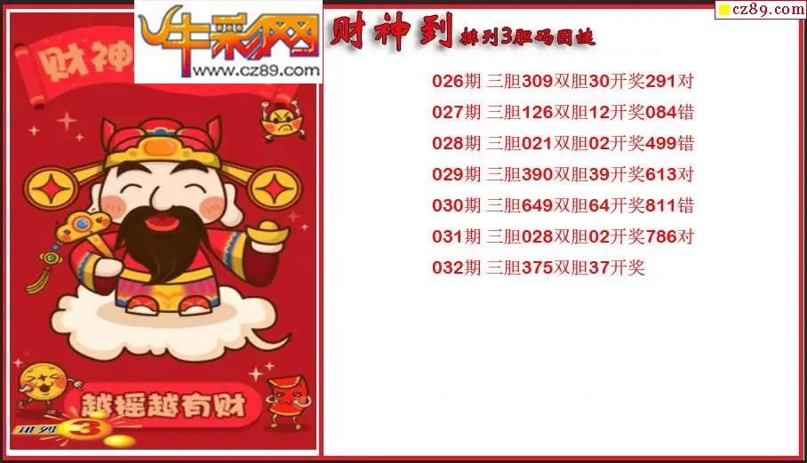 2026032期P3财神到胆码图谜